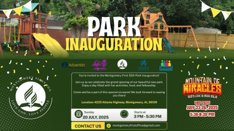 On Sunday, July 20, 2025, at 3:00 p.m., the Montgomery First Seventh-day Adventist Church will celebrate the grand inauguration and dedication of its brand-new community playground—a project that has blossomed into reality through months of faithful work, selfless giving, and tireless collaboration.